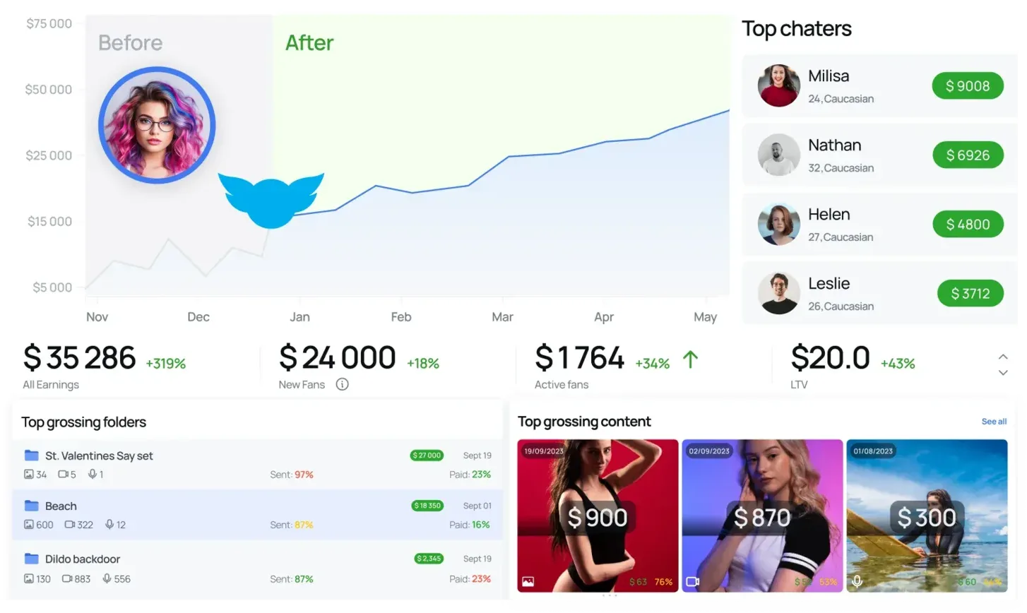 3. Performance Analytics: OnlyFans software often includes detailed data, allowing creators to track performance metrics such as subscription growth, content popularity, and fan engagement. By analyzing these metrics, creators can make data-driven decisions to improve their content strategy and maximize earnings.